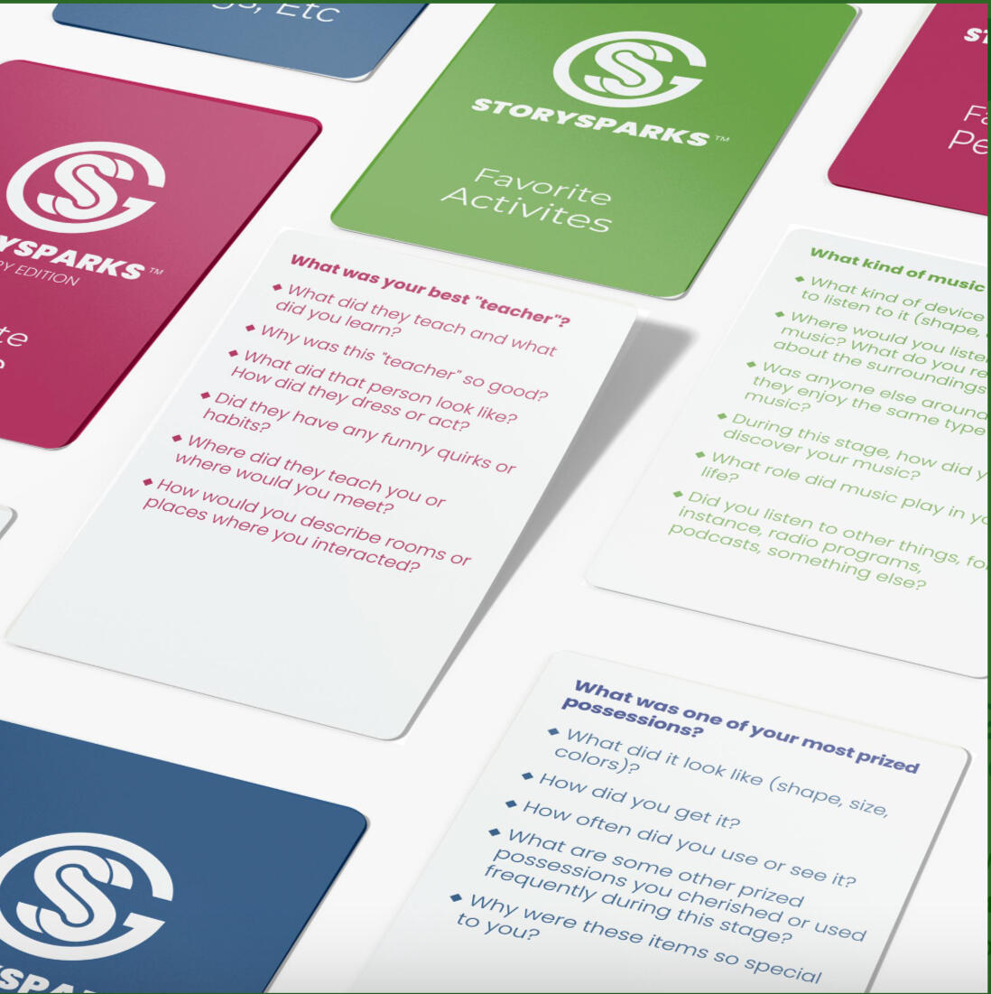 StorySparks is a thoughtfully designed conversation card game that helps people connect through storytelling—whether you're navigating Alzheimer’s, dementia, or simply want more meaningful conversations with the people you love.